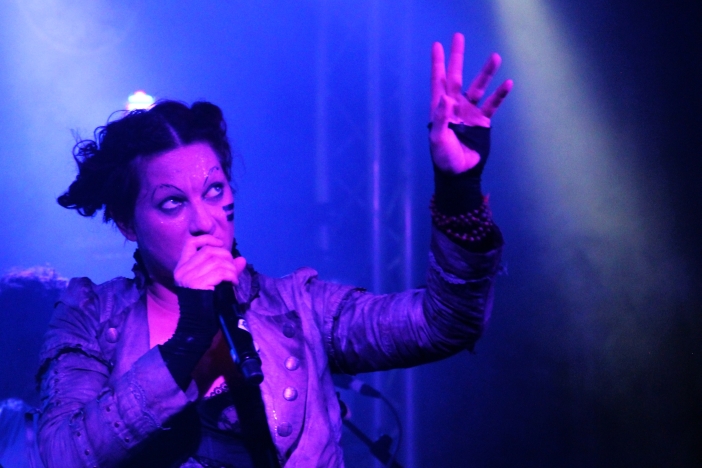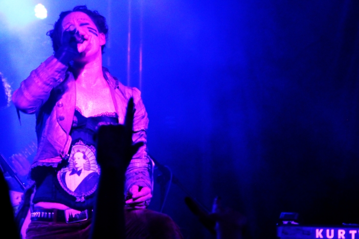 Then Amanda Palmer came on, promising not to repeat the nude performance of her song for the Daily Mail which has made the night before’s London gig an instant legend. Launching into one of the standout tracks from her latest album ‘Do It With A Rock Star’, the set started with Amanda and band giving it 110%. A stunning song, a little reminiscent of Robbie Williams’ ‘Let Me Entertain You’ (in spirit, at least), it works as a call to arms for Palmer and makes that immediate link with her audience for which she is famed, including stage diving into the crowd. And this was song number one.
