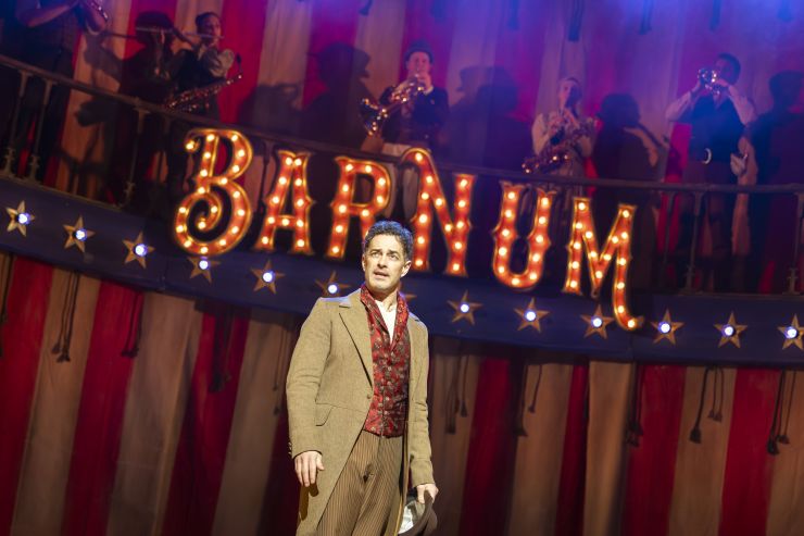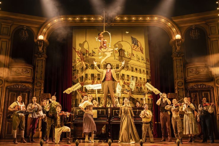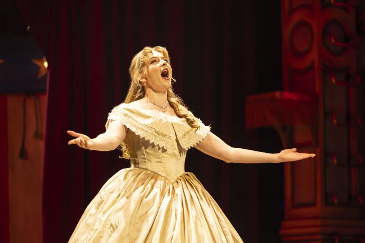 The talent on show in each and every single performer showcases such versatility, in the variety and comedy of all the musical instruments played, magic, dancing, circus acts, and of course: singing. The team work and support they give each other, the spacing: it all works beautifully. And of course this is a star vehicle for Lee Mead as the central character of Barnum in acting as well as singing: his voice is so delicious to hear live: such power, range and emotion, as well as magical tonal quality. Penny Ashmore’s operatic soprano vocals as Jenny Lind are a joy to hear; contrasting with clear vocal tones of Monique Young as Mrs Barnum and the bluesy tones of Dominique Planter: there is a full spectrum of delight on show.