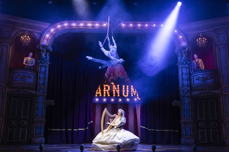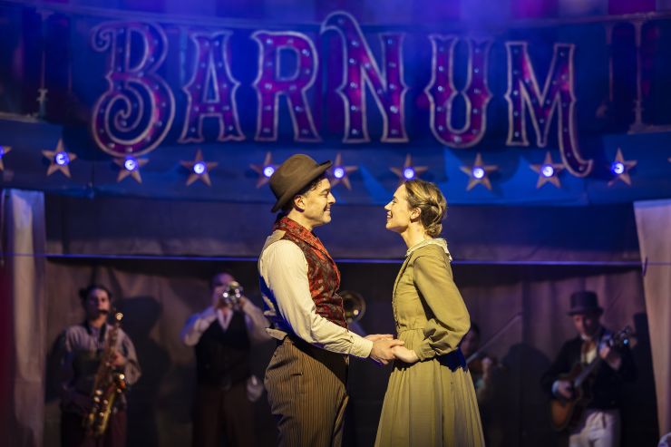 Similarly, Oti Mabuse’s choreography is both an homage to the authentic originality and youthful and vibrant of now. The sad clown dance, epitomising Mrs Barnum’s feelings, is one of beauty; and all the choreography often incorporating the acrobatics of the circus is stunning. The flexibility and control on show is amazing, and their precision in movement and obvious trust in each other is truly gorgeous to watch.