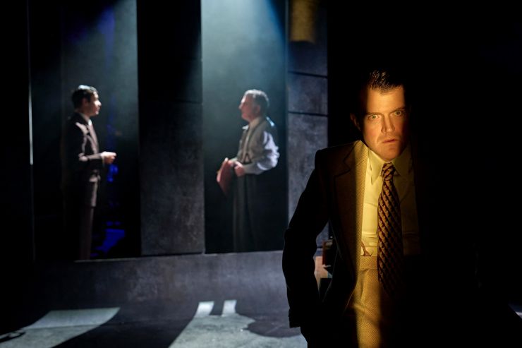 Mischa Barton is physically stunning as the ultimate femme fatale Phyllis Nirdlinger, part Verona Lake, part Faye Dunnaway, although her wardrobe could have been more flattering, fitting and glamorous. We see why Walter Huff’s eye is turned when he sees her, however, this moment could have been built on more and doesn’t follow through. Suddenly these two people who don’t know each other at all are planning a murder as if they are planning a coffee morning. It’s hard to find chemistry between them: lack of physical tension, lingering looks, flirting, sensuality; all could have been layered in. Gillian Saker however, in various roles, notably Secretary Nettie, comes across as a fully rounded believable character, and Sophia Roberts has some strong scenes as Lola Nirdlinger in the second act. Martin Marquez plays a fully rounded character of Keyes with his changing views and compromised integrity towards the end, garnering our sympathy. This is a stylish thriller with potential, with some moments of theatrical beauty, but doesn’t yet deliver all it could.
