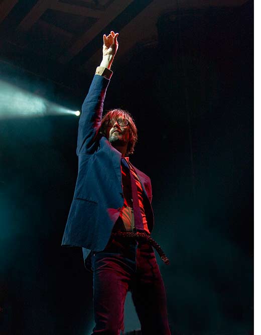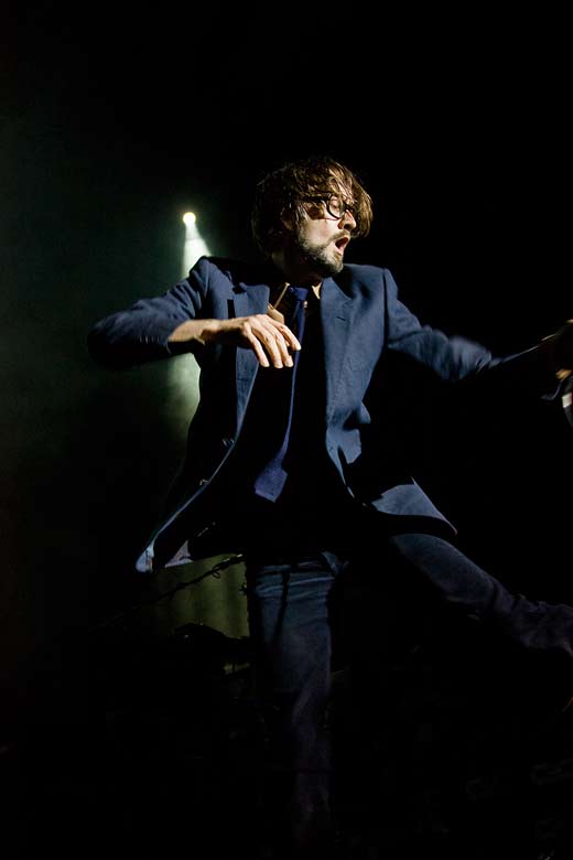 I don’t think the bizarrely addictive www.celebheights.com has got it right. Jarvis Cocker is not 6’2″. He must be at least 7 foot tall, which made it seem all the more strange when he hobbled onto the stage of the Dome with a particularly small walking cane. “This is the first time I’ve got this cane out in public” he told the crowd to rapturous applause in his unassuming Sheffield accent, before trying to balance it against his keyboard unsuccessfully. He fumbled around for a while, bending down awkwardly, before leaving it next to the drum kit. The whole thing was reminiscent of that scene in Willy Wonka and the Chocolate Factory, where Willy Wonka hobbles to the gate of the factory in front of an expecting crowd (if you haven’t seen it, make sure you do…now) and everyone watches in stunned disappointment. This wasn’t the entrance we were expecting… Then the music started.