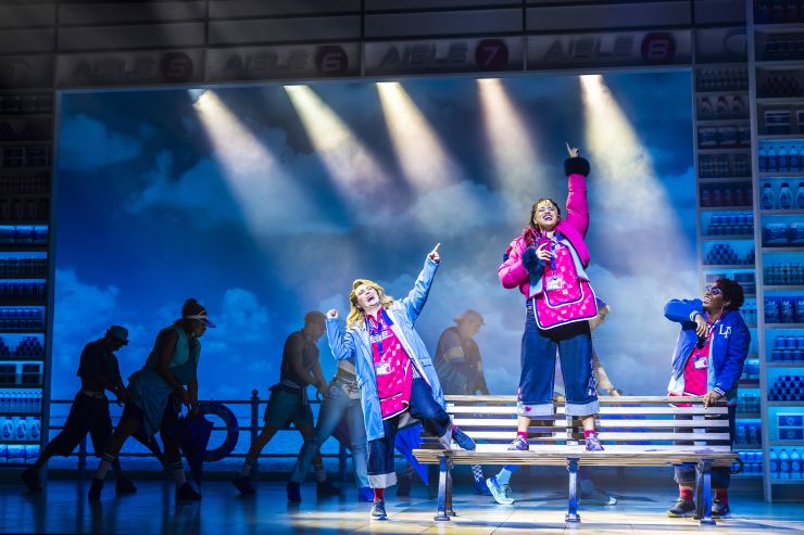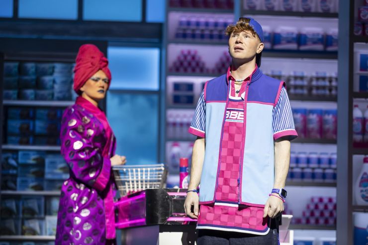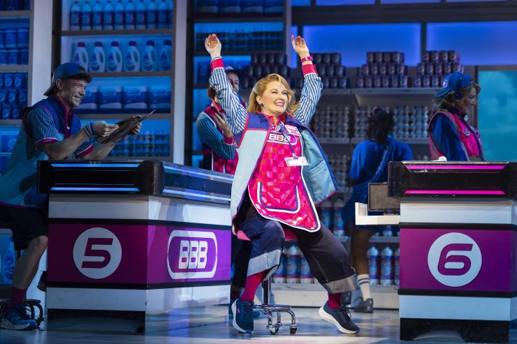 An all singing all dancing new musical set in a supermarket using the songs of Steps – well, why not. The pop colours of the set, the aisles labelled “5, 6, 7, 8” and bright smiles all remind us of the pop band that was so hugely successful, and this musical is almost continuous songs from their catalogue of hits that help drive the show along. They followed in the tradition of Bananarama in the 1980s, coming with ready made dances for their fans to copy while singing along: and fans will be very happy that there is a place for them to join in, in this show’s medley finale.
