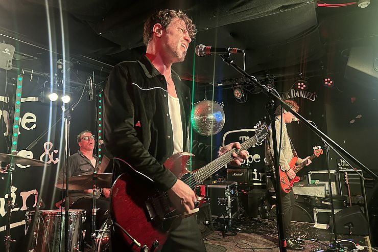 There was no support band tonight but special guest DJ Dave Best of Fujiya & Miyagi played a well received set before the trio jumped on stage unannounced and launched into ‘Old Romantic’, swiftly followed by ‘Bored Animal’ and ‘Marc-Andre Leclerc’ the three opening tracks from the latest album. These songs set the scene for the rest of the evening: it was pure punk rock ‘n’ roll energy with Kris Sonne beating out the rhythm, Dave Page providing solid bass lines and backing vocals and James Walbourne, all quiff and snarl, letting rip on fast and furious fuzzy guitar and wild vocals.