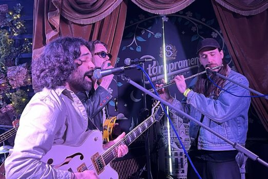 With harpist Sekinue and flautist Guy Jones (seen earlier with The Beyene Affair) the latest additions to the lineup, it was great to again see a truly local band that have put the hours in playing free shows and honing their, already fine, craft. The loyal twang fans quickly filled the venue as JP and Dan’s joyful guitars and vocals, switched between time and tempo to create a mesmerising sound on Slowest Creature. JP’s delicious guitar riff heralded Mrs Sunshine which manifested into a trippy workout with Jones’ flute adding its magic touch. New song Pepper Kettle featured their usual catchy lyrics and melodies that they deconstructed as each member did their own thing without losing momentum before returning to the chorus. The thirty minutes flew by and they ended with Taking Your Time, a slower pace set by hi hat and rim shots. It built and built but then faded to a whisper as Sekinue picked at the harp before building again as the vocals came back for a triumphant finale that was met with rapturous cheers. Pure joy from start to finish. (SC)