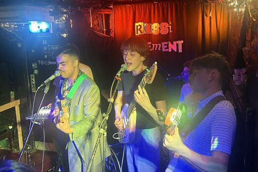 To the even smaller, even hotter, Rossi basement for a luscious folk set. Using a Shruti Box to create a drone they started the set with light vocals from Solis and drums and bass joining. The songs tripped along delightfully, like a much needed warm summer breeze. Good And Plenty, about Catholic guilt (“don’t tell my Granny”) featured fuzzy semi-acoustic guitar, her beautifully bewitching voice glided over a gentle bass and drums backing which never overwhelmed the sound or mood. Something about the Rain’s lilting melody sounded like a standard and set closer Scenery had the attentive audience swaying in time to the spellbinding sound. (SC)