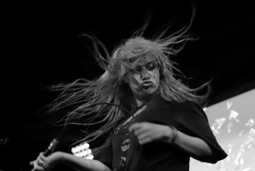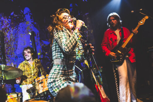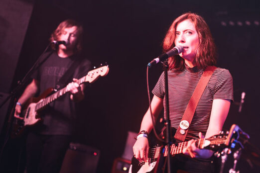Congratulations (sic) are the sort of band you fall in love with even before you’ve heard them play a note. Ambling onto the stage with a cheeky wink and a knowing look, they put a smile on the face before a single note is struck. They look amazing and as they launch into a breathtaking set, they sound it too. Singer Leah gives off slightly squiffy big sister vibes as she pulls the shapes and sings the songs. She is an acrobatic stage presence. congratulations are all sassy dance moves and a glam rock stomp that channels the dual spirits of Ditto’s Gossip and Prince and Lynott (OK, we say that largely because guitarist Jamie looks a bit like him). We even get some coordinated crowd dance moves and we’re still shimmying left and right long after the last chords ring out. Brighton is offering up some real musical stars of late and congratulations are perhaps the shiniest. Oh yes. And they have the happiest drummer on the planet. Love it. (JW)