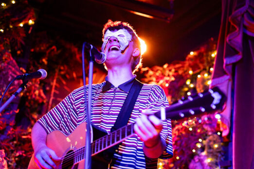 Despite the name the dark name, Jamie Clarke’s alter ego is a soothing brand of folk. He was clearly paying attention to for ‘For Emma, Forever Ago’, which is just perfect for this moment. The folklore rooms quickly fills to capacity. ‘Effortlessly, I Feel Everything’ is a particularly captivating moment. For ‘Crushed’ he switches off the amplification. This really benefits the intimacy and the fragility of the performance, and it as all the warmer for it. (NM)