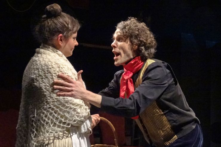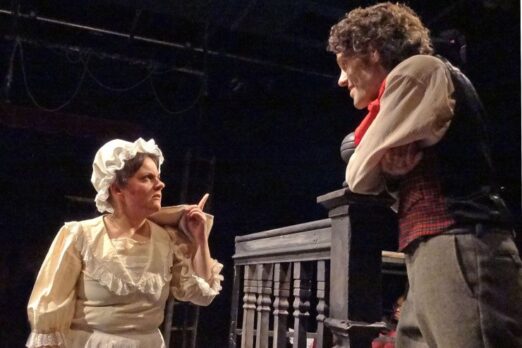 This is an utterly charming production, gratifyingly reminding us of the gold standard of musicals: that the scenes swell with emotion until speaking does not suffice, and only singing will do. The words and music are super and the actors perform each one as their character. It’s such a breath of fresh air to feel a moment turn into a song, rather than the usual ‘take places please, my big song is coming up’ in other shows. There are also some lovely voices on show: Tom Slater-Hyndman owns the stage as Alfred Jingle confidently holding court with his take on life; his performance as a whole is compelling and a joy to watch. Jeremy Crow and Gerry Wicks are a hoot as the swindler solicitors who in other less experienced hands might just be loathsome – here they are warm and funny as well, especially in their song and little dance routine.