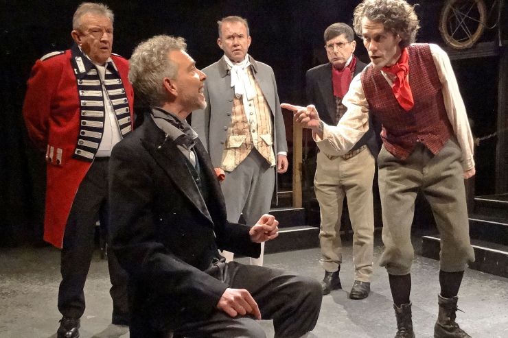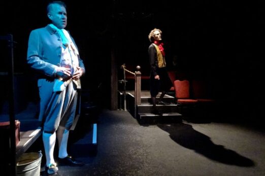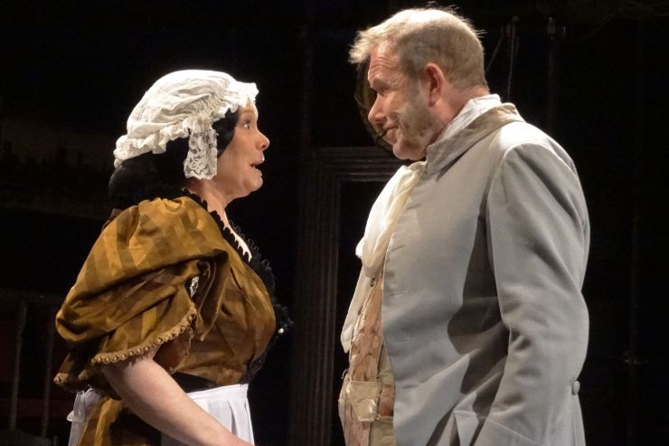 It’s good to see despite being archetypes the actors portray the characters with depth and layers. Culann Smyth and Robert Purchese in the titular roles respectively hold this standard beautifully. Pickwick who could otherwise be a buffoon is here someone who has led an extremely sheltered and naive life; whilst the lower class Weller is streetwise and the opposite: although he still sometimes makes the wrong decisions. In Dickens’ world where characters are often played as black or white, it’s so good to see more nuance, realness, and grey areas. Also unusual is a feisty woman who turns out to be ‘good’ and retains her femininity and even lives to tell the tale; a lovely performance from Laura Scobie as Mary, including a justifiably angry solo song. Another lovely performance is from Alistair Lock as Pickwick’s verbose friend Nathaniel Winkle, whose rising tension and discomfort in the court scene is laugh out loud funny.