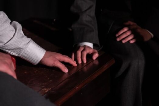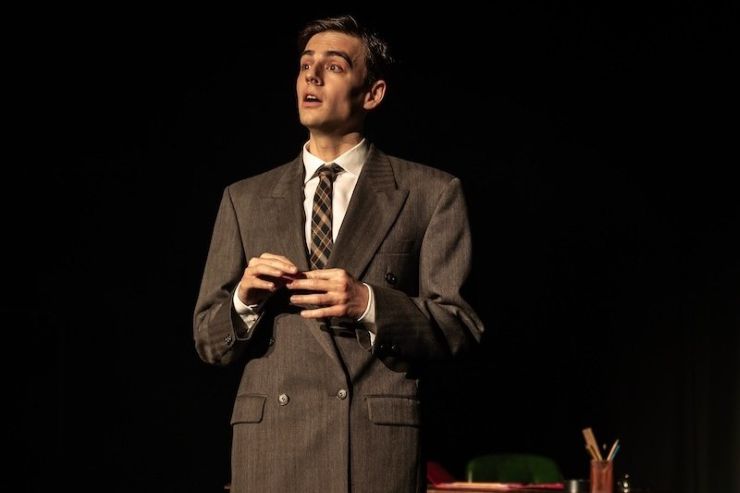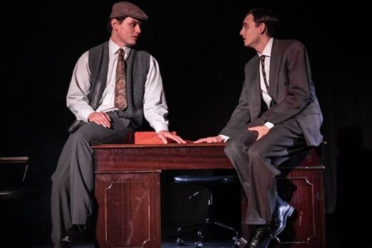 What’s incredible about this is that not only is the story superb, but the production quality matches it exactly. The clothing and setting takes us to the 1950s, and we meet an array of fully developed and rounded characters, played entirely by two people. Mitchell Wilson plays Tom with a naiveté is so real it’s almost palpable. His innocence, self-discovery and sunny interface with the world make him so loveable that his journey is all the more compelling, funny, touching, and devastating. Max Lohan and Andrew Pollard multi-role so effortlessly it’s jaw dropping: moving into position in a way to not distract from the action, changing an item of clothing as well as physicality and voice. These three actors together give us a masterclass in acting: sweeping us along with the story, making every moment believable, truthful and real.