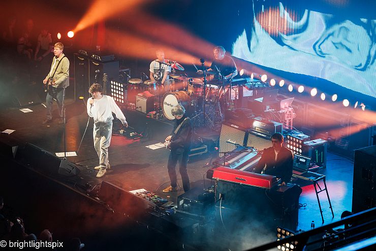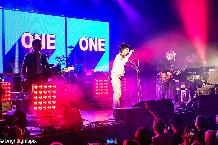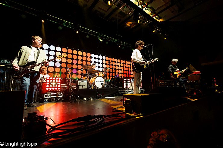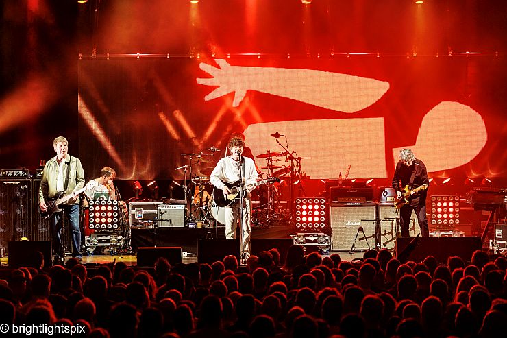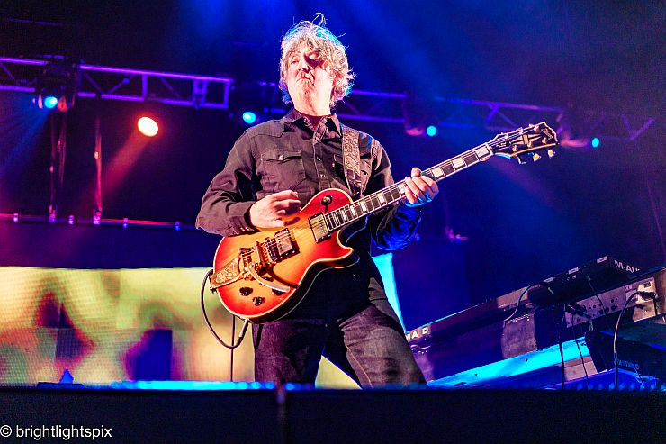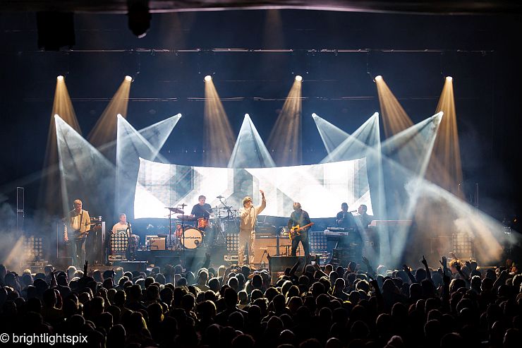 With the stage still in darkness, a 1,2,3,4 drumstick count in was joined by electric piano, when suddenly the lights came on as Tim Burgess and his bandmates completed the ensemble sound of new song Kingdom Of Ours. It’s a slow pace to start the set but after Burgess remarks “How’re you doing Brighton, it’s good to be back” Mark Collins’ lead guitar and Tony Rogers’ keys came to the fore as Burgess looked out on the sold out crowd with arms outstretched.
