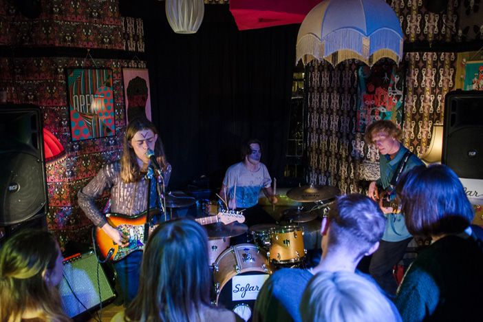 Based around the core duo of singer and guitarist Danny Miller and drummer Max Harwood, Lewis Del Mar expand to a five-piece for this evening’s show in order to add some serious funk ballast to their head-nodding songs. That they’ve made their home on New York’s Rockaway Beach (most famous indie-rock resident, Mac DeMarco) helps make sense of the casual demeanour of their songs, Miller shaking his curls to his acoustic guitar strikes as the band’s rhythms slide and plunge. ‘Malt Liquor’ rises in intensity with some heavy bass work while the “Can you please sit the fuck down?” lyric that opens ‘Loud(y)’ has completely the opposite effect on the crowd, its dirty funk lurch generating some pretty wonky dancing. (SH)