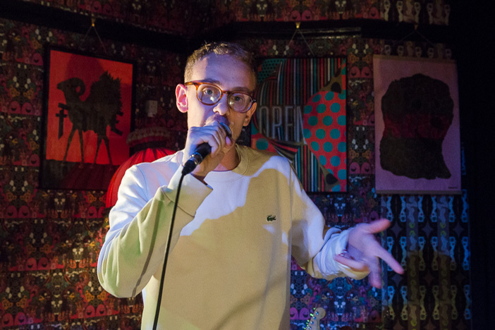 Last up at Hotel Pelirocco are Frankie Stew and Harvey Gunn. Considering the time constraints it’s a blessing they only need a mic and laptop for their set. The duo have carved their own space in UK hip hop, with Frankie weaving together sincere narratives atop Harvey’s warm and uncluttered production. Frankie’s confidence has grown and his delivery has definitely been honed since we last saw them. These aren’t fast paced bangers and aggressive lyrics; these are stories to be listened to and vibes to be enjoyed. (MT)