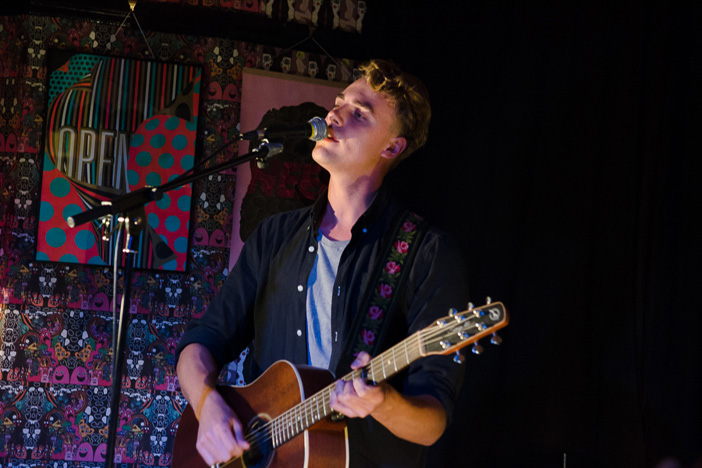 We find ourselves at a secret show at Hotel Pelirroco, as secret as any show can be with announcements and tweets. We arrive and catch the end of Hein Cooper’s set, a stripped-back show with the Sydney singer-songwriter up solo with guitar in hand. His heartfelt songwriting captures an attentive audience to the extent that all the chairs are taken, there’s a huddle at the bar and many have taken to sitting on the floor. (MT)